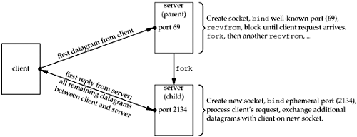 invoked by inetd), we have the scenario shown in Figure 22.19. We assume that the